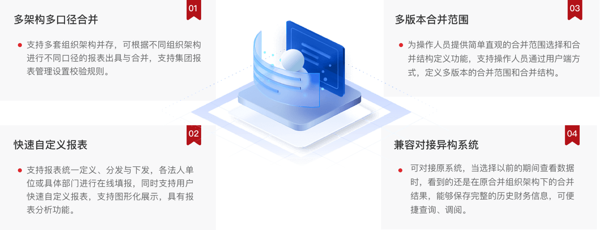 “本项目的总体目标是通过建设和实施报表管理系统,实现单户报表项目重分类,快速出具单户报表,自动生成月报和快报,替换填报原系统的大量工作;实现多期间、多架构的快速、精准合并,提高合并数据的准确性;提升效率,简化内部控制节点,降低数据风险;实现精细数据的深度合并,及时满足外部报告、内部管理多重数据需求,提高合并数据的及时性。”